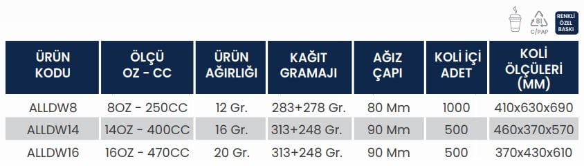 Çift katmanlı yapısı sayesinde içeceğinizi daha uzun süre sıcak tutar ve el yakmaz. Dayanıklı, şık ve pratik kullanımıyla kahve, çay ve tüm sıcak içecekler için ideal bir çözümdür. İşletmeler için hem konforlu hem de profesyonel bir sunum sağlar.